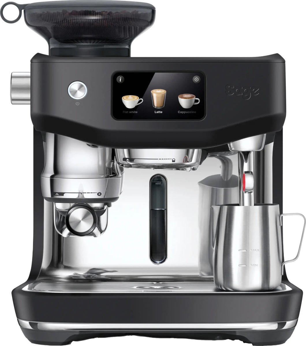 Sage Oracle Espresso kávovar Jet SES985BSS vám prináša luxusný kaviarenský zážitok priamo na kuchynskú linku u vás doma. Vďaka responzívnej dotykovej obrazovke, vstavanému presnému mlynčeku s 45 úrovňami mletia a funkcii Auto MilQ pre krémovú mikropenu tento kávovar posúva kávu na novú úroveň.