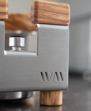 Toto tamper stanica z Wiedemann je perfektnou voľbou pre baristov, ktorí chcú vo svojom espresso kútiku precíznosť a estetiku. Vďaka robustnému a štýlovému dizajnu vyrobenému z vysoko kvalitného dreva je stanica funkčným aj vizuálne atraktívnym vylepšením. Vyberte si zo štyroch rôznych druhov dreva: olivové drevo, orech, dub a tmavý dub. Kombinujte svoj výber dreva s tromi rôznymi druhmi ocele: nehrdzavejúca oceľ, biela lakovaná oceľ a čierna lakovaná oceľ.