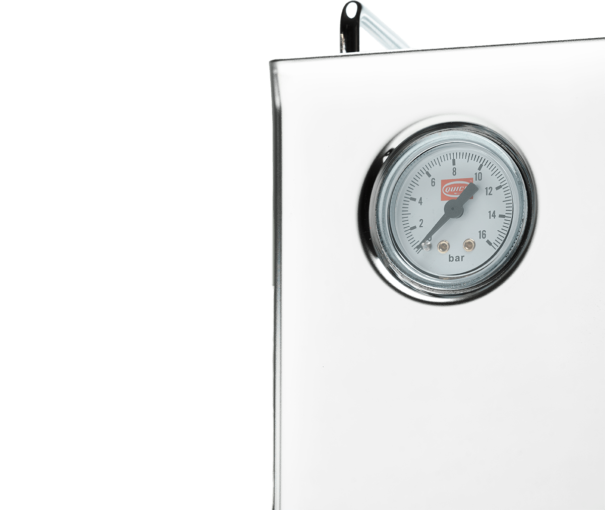 Integrovaný manometer (0–16 bar) zobrazuje tlak pri príprave v reálnom čase a pomáha vám nastaviť mletie, dávkovanie a tampovanie pre optimálny nástrel.