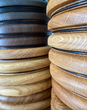 Ručne opracované a starostlivo vybrané drevo vizuálne dopĺňa kovové komponenty a poskytuje jedinečný haptický pocit.