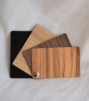 Vzorky sú tenké, ošetrené rovnakým prírodným olejom, ktorý používame v našich hotových produktoch a zložené s praktickým kovovým skrutkou.