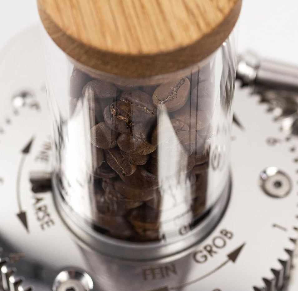 Všetky naše produkty sú ručne vyrábané v manufaktúre Wiedemann a vyrobené z dreva z udržateľného lesného hospodárstva. Náš zásobník na zrná je dokonalým vylepšením pre vašu kávovú mlynček a udržuje vaše zrná čerstvé po celý čas.