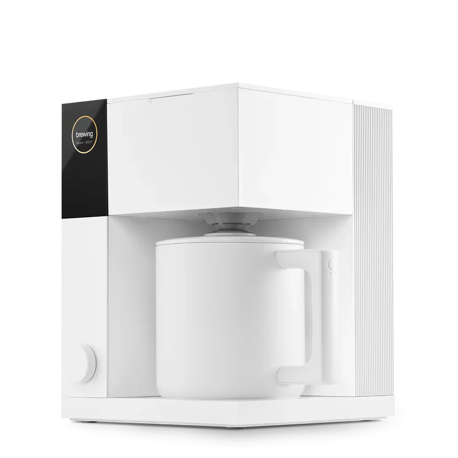 Ten/Tá/To Fellow Aiden Brewer v bielom ľad pour-over varenie – zdokonalené a automatizované. Aiden je určený pre tých, ktorí si cenia skvelú kávu, ale nechcú sa trápiť s manuálnym varením, a dáva vám úplnú kontrolu nad najdôležitejšími premennými: teplota, načasovanie, kvitnutie a sýtosť.