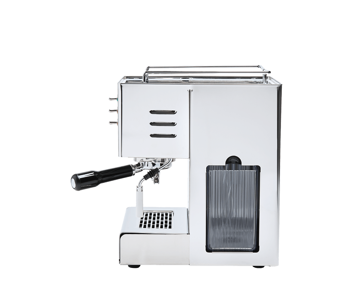 Klasické páčkové ovládanie, jasné kontrolky a 1,8 l bočná nádrž robia z Cassiopea jednoduchý stroj na každodenné používanie a údržbu.