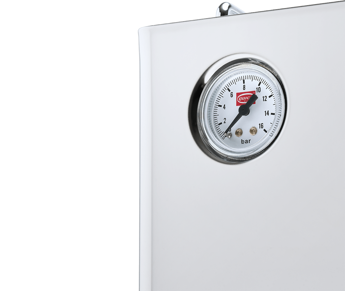 Manometer (0–16 bar) zobrazuje tlak prípravy, takže môžete upraviť mletie a dávkovanie pre presnú a vyváženú extrakciu.