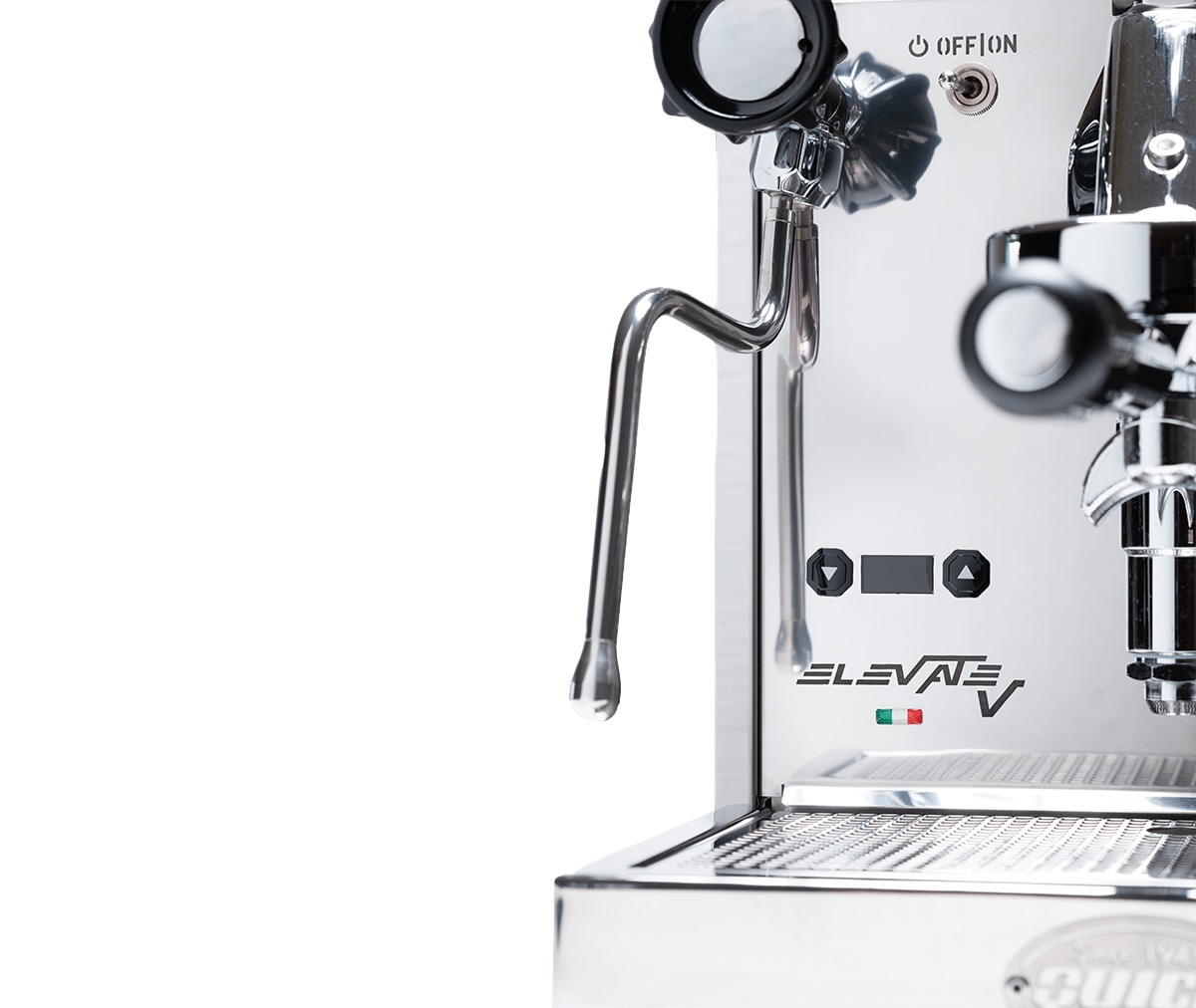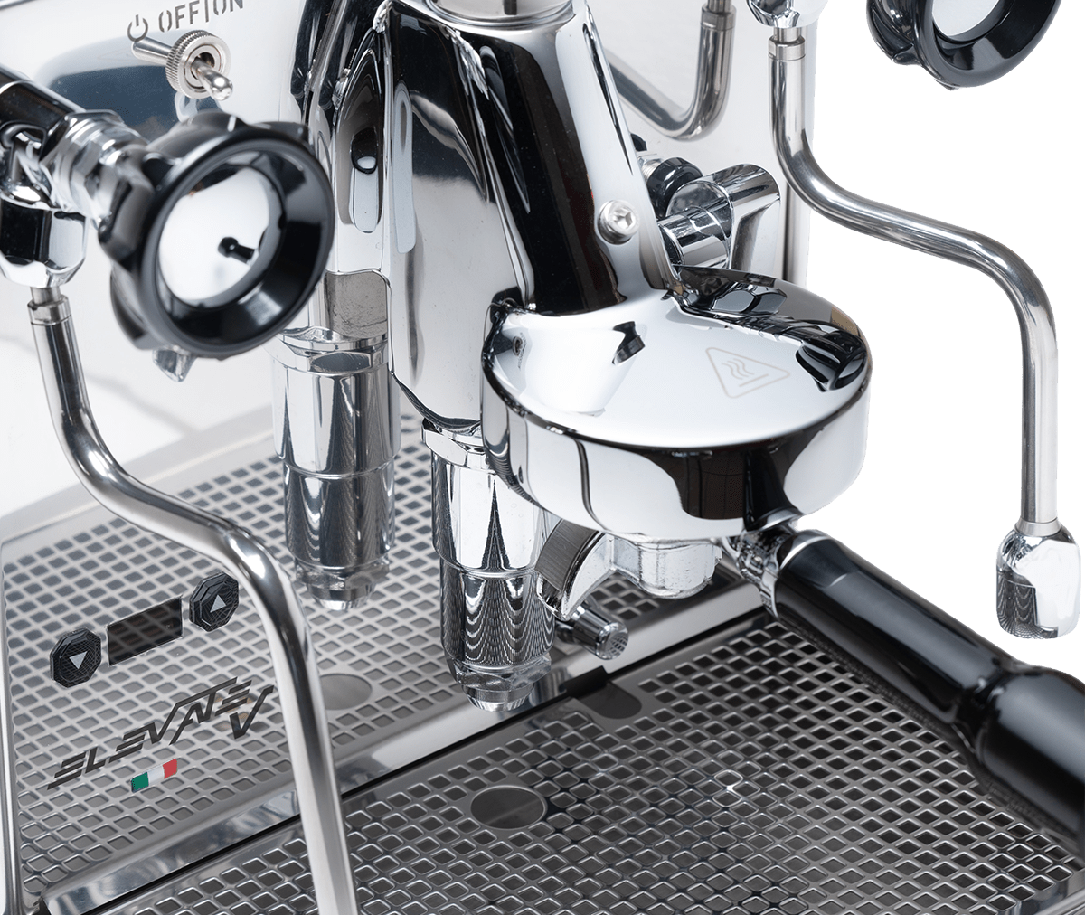 Elevate V je vybavený exkluzívnymi ergonomickými ventilmi Quick Mill a anti-spáleninovými tyčami — ideálne na penenie mlieka a bezpečnejšiu manipuláciu.
