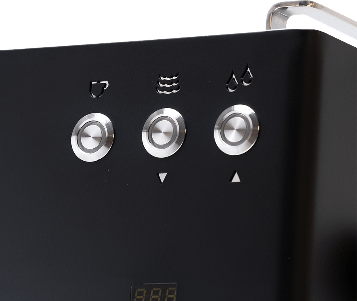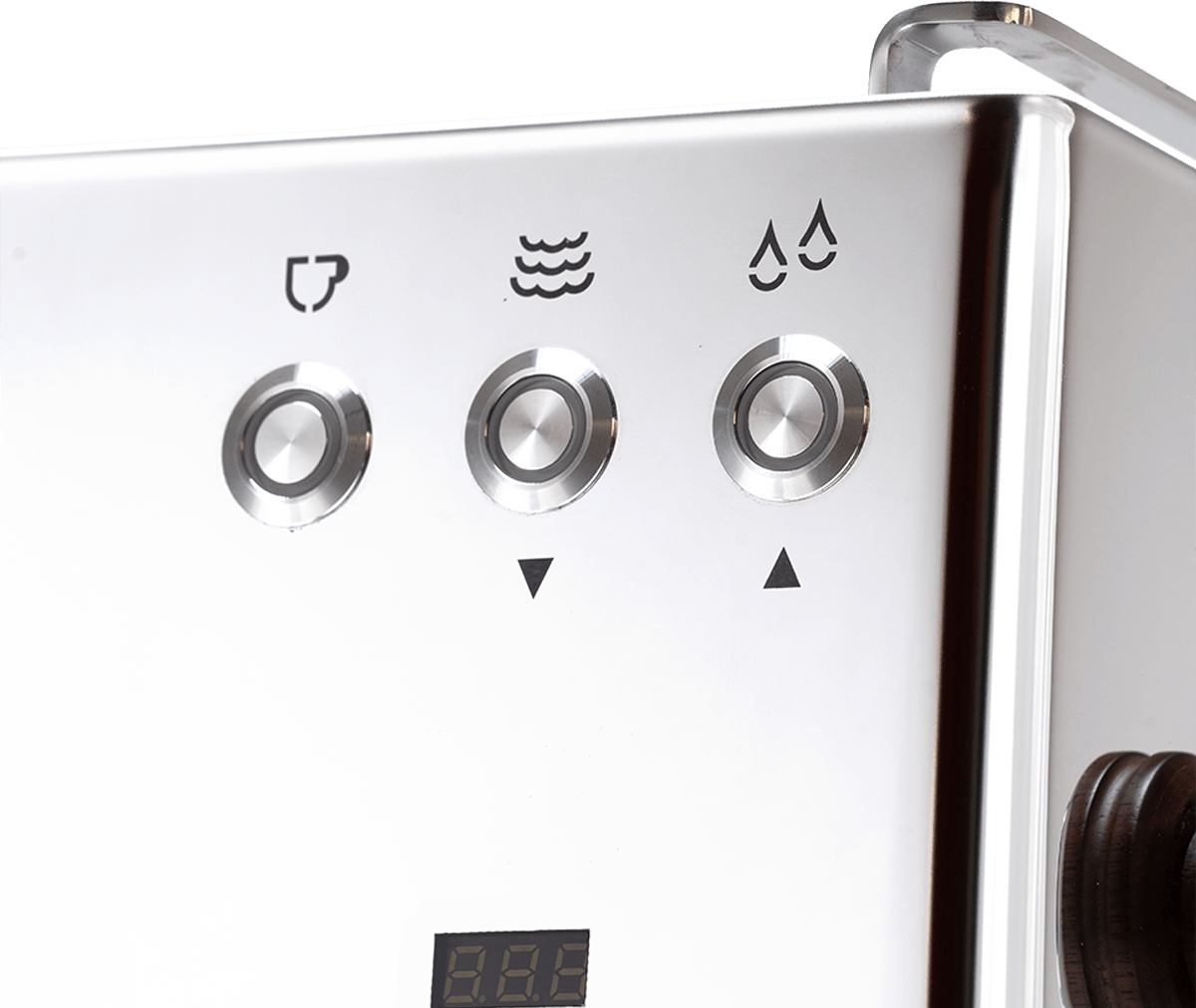 Integrovaný displej zobrazuje teplotu, časovač shotu a nastavenia. Stroj ponúka aj programovateľnú predinfúziu, režim pohotovosti a eco-mode pre flexibilné použitie a energetickú úspornosť.