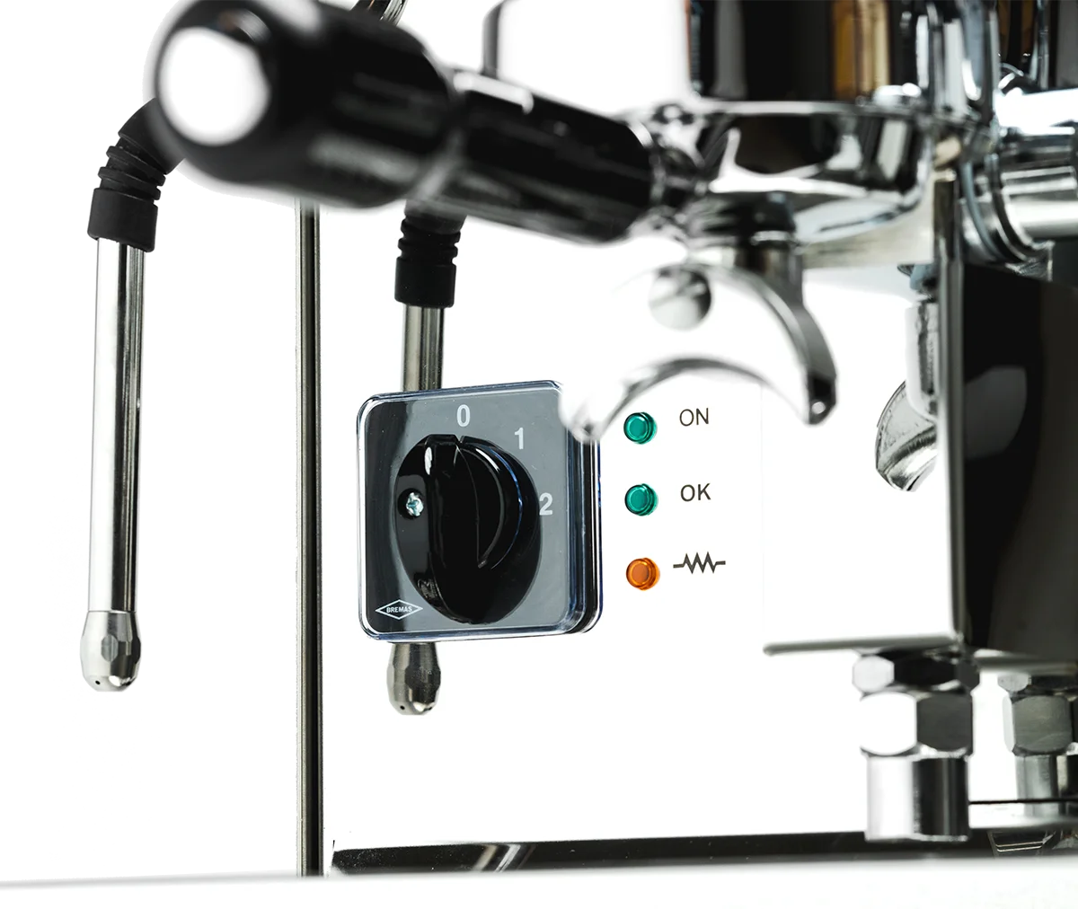 - Veľký medený kotol s výmenníkom tepla (7,5 L) – Stabilná teplota a silná para.